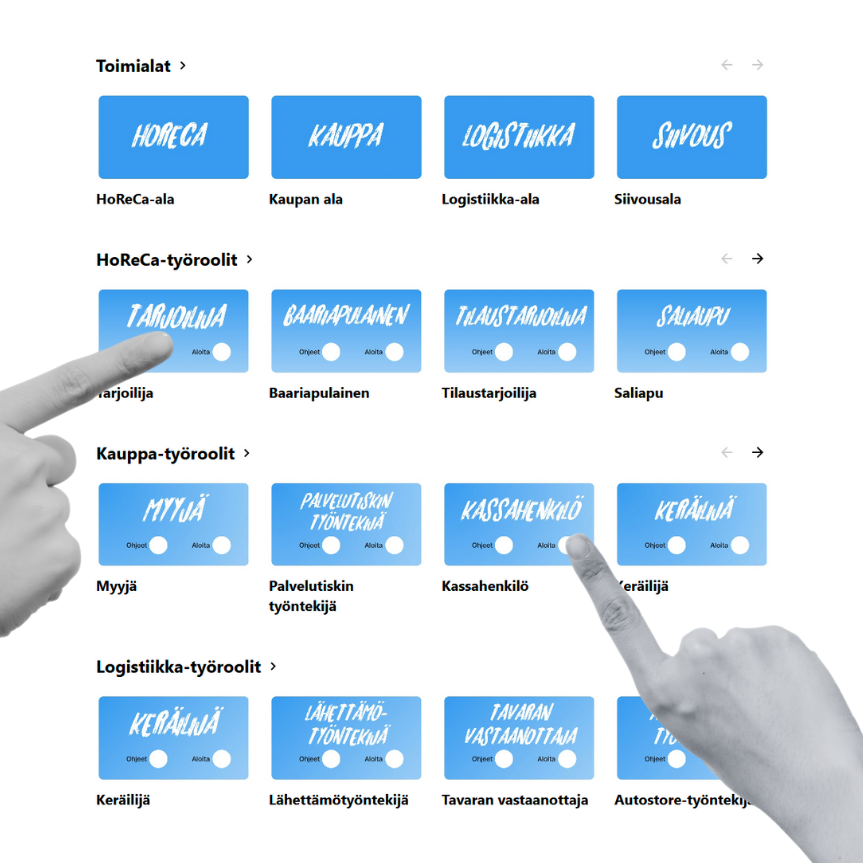 Selkeät ja monikieliset digitaaliset työohjeet ja oppimispelit varmistavat sujuvan työskentelyn ja laadukkaat työsuoritteet.